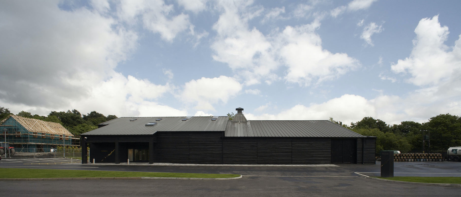 Following a successful launch, the distillery decided to build a venue where public could watch the process of making the distilled liquorand provide a backdrop for tasting events. Archer Humphryes was commissioned to design the building after being approached by Welsh Whisky Company director Nigel Short, also owner of Browns hotel in Laugharne, famous for being the preferred drinking establishment of poet Dylan Thomas. Creating a visitors’ centre in a National Park was a mammoth undertaking for the architects, requiring unwavering perseverance. The process took several years, as they acquired an intimate knowledge of the landscape, which they visited frequently. The centre was officially opened by the Prince of Wales on 26 June 2008, and received huge critical acclaim.