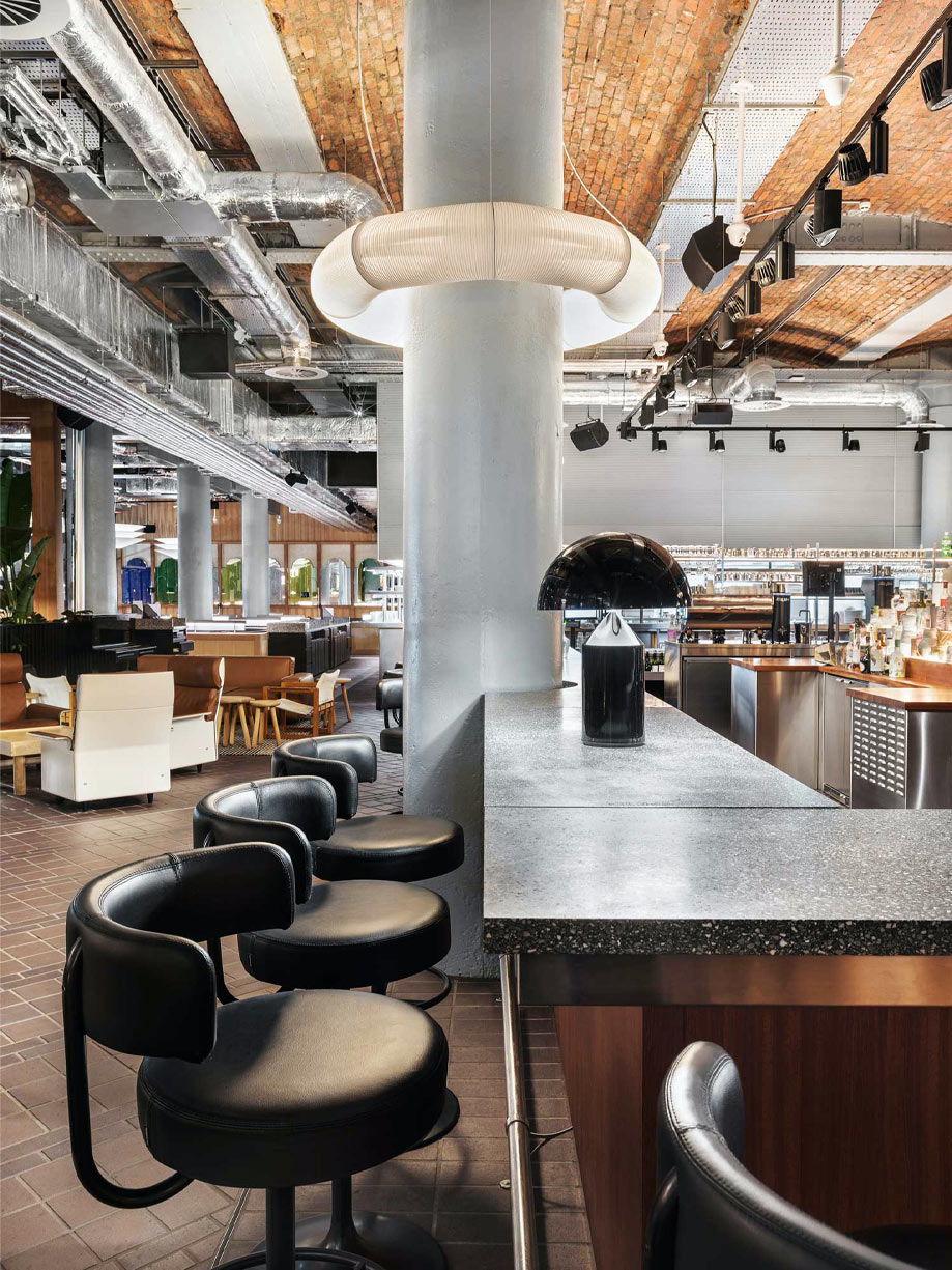 Already a triumph in Manchester, the architecture and interior design was intent on revealing the grandeur of the Victorian cotton warehouse embedded in the heritage of the rail and canal network, whilst layering the interior to reveal the cavernous space in isolated pockets. With a rich history, both nuanced and audacious it was important to find a human scale in the narrative with comfort. This was achieved in an architectural language that is reminiscent of a public library where you can have solace in the open plan whilst being part of the community ‘living room’- a ground floor social hub Includes an 80-seater restaurant, a Mini-Cini, coffee counter and flexible events and workspaces, providing a unique community centre and all-day hangout.