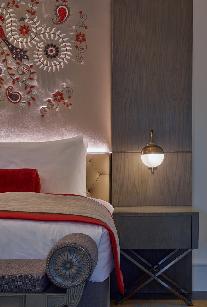 After visiting the Red Fort in Delhi, the Archer Humphryes’ decided to examine the Indian cultural themes of the past, before attempting the extensive redevelopment of Edward Mountford’s 1893 St. Olave’s Grammar School re-imagined as the international debut for Lalit London Hotel next to the Thames.