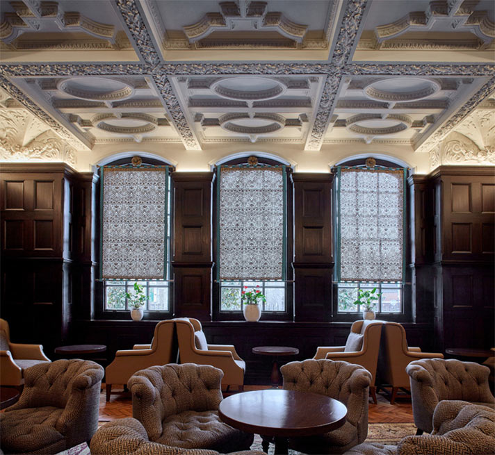Inside the bedrooms the designers created a rangoli tapestry—reminiscent of the golden ‘Peacock Throne’—where the relief forms the bedheads in every room with applique silk tapestries made by seamstresses in Delhi. Fodor’s capture this as ‘English Heritage meets Indian opulence” where the designers have paid homage to the scholastic origins. The biggest success of the project is the planning achieved by Archer Humphryes where they revivified the urban realm into a flourishing district formerly derelict.
