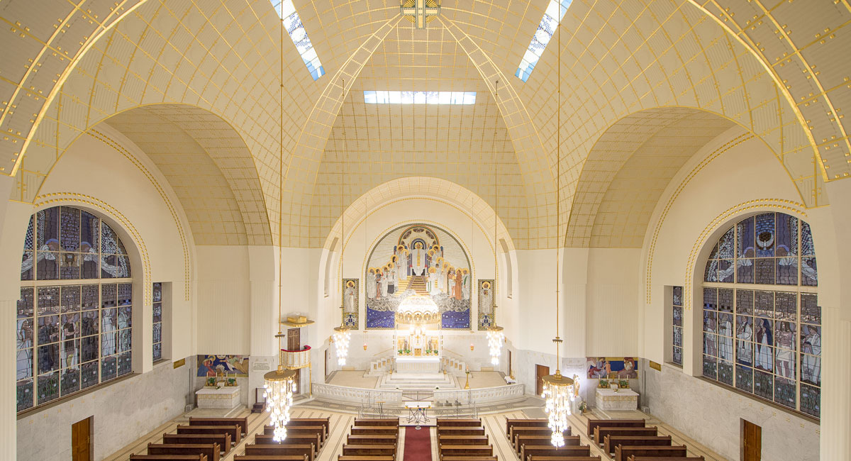 David Archer finds modernity and tradition meet in Otto Wagner’s creation of a complete artistic environment for the Steinhof church in Vienna. I first came across this church in books when I was curiously exploring different expressions of architecture in the early 1980s. At the time there was a surge of interest in Arts and Crafts amid a backlash against brutalism and abstract concrete structures. That sort of thing wasn’t remotely on the agenda when I studied at Canterbury and the Bartlett, but much later I came to Vienna for work and finally visited the Steinhof church for myself as I worked my way through the architectural riches of the city.