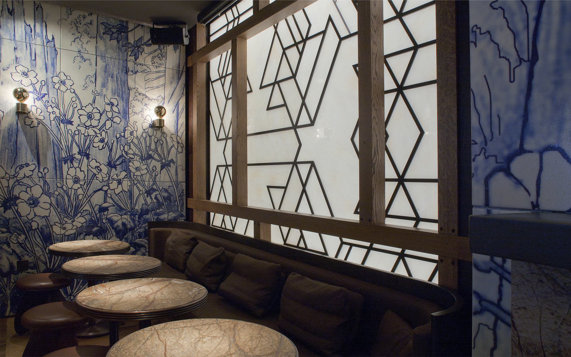Having designed more than 40 restaurants Duck and Rice is definitely Archer Humphryes first Cantonese gastropub, combining British and Chinese themes of dining and drinking. In this revival of “watering holes of yesteryear for today” the concept is both Asian and British aesthetic traditions. Geometrical patterns play around the spaces dividing drinkers in to intimate booths warmed by wood burning fireplaces. The atmosphere is both redolent of the densely decorated Victorian pubs loved by Londoners and bears witness to a more carefully composed Asian tradition of plain and implied spaces. Formerly the Endurance pub the resulting reinvention creates a thoroughly modern venue out of this traditional previously hard-drinking den.